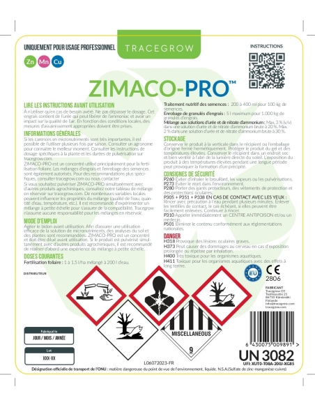 ZIMACO PRO: Est un concentré utilisé principalement pour la fertilisation foliaire. Les mélanges d’engrais et l’enrobage des semences sont également autorisés il est également utilisé pour corriger les fautes carences en manganèse, zinc, soufre et cuivre.